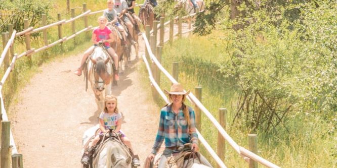 Winding through high altitude ponderosa pines and stands of paper birch, the 4 mile long Keystone Trail is a popular ride. Easy to moderate in difficulty, beginner riders will be able to relax and enjoy a wonderful horseback riding experience, at the same time advanced riders will enjoy the rugged picturesque landscape. Photograph your gang riding beneath these towering granite cliffs, ageless and windswept. This trail has something for everyone.