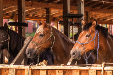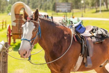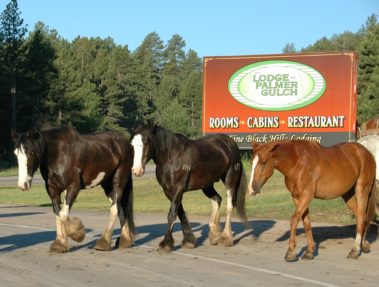 Palmer Gulch Stables maintains a herd of around 100 head of horses. Ninety saddle horses and 10 heavy drafts. The Draft horses are used to pull the covered wagons on the Chuck Wagon Dinner Show.