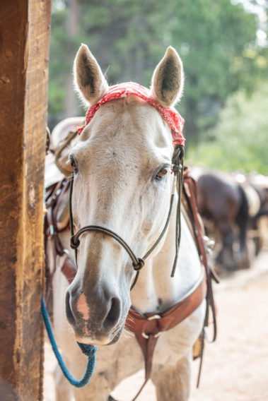 You’ll see characteristics of many horse breeds here, Quarter horses, Appaloosas, Paints, Arabians, Shires, Belgians, Percherons, to name a few. However, even the casual observer will quickly appreciate the extra size of these horses. Averaging 200 to 300 pounds per head more than your average saddle horse, these guys are big. This additional size is attributed to a bit of draft in their pedigree and makes them ideally suited to these mountains. They are strong, willing, and very patient. When traveling up and down these mountain trails, the strength of a horse is of prime importance.